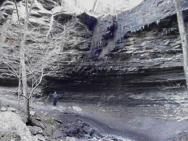 | The ground was also ice covered....!!! | A neat rock formation and cave | A frozen Magnolia Falls |