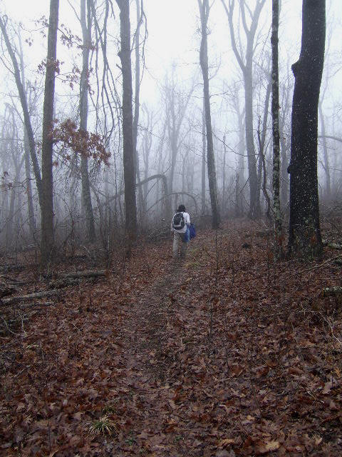 We re-entered the fog as we got higher in elevation, but that meant we were closer to the trailhead. Steve and Tonya made it to this spot 1 1/2 hours later. |