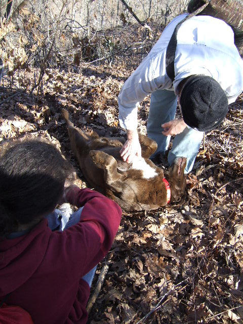 John was in big trouble...his legs were ripped to shreds and the expression on his face told the rest of the story.....I told him not to go searching...but did he listen? (Click on picture) |