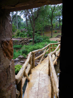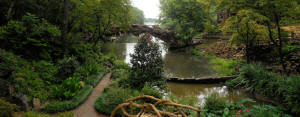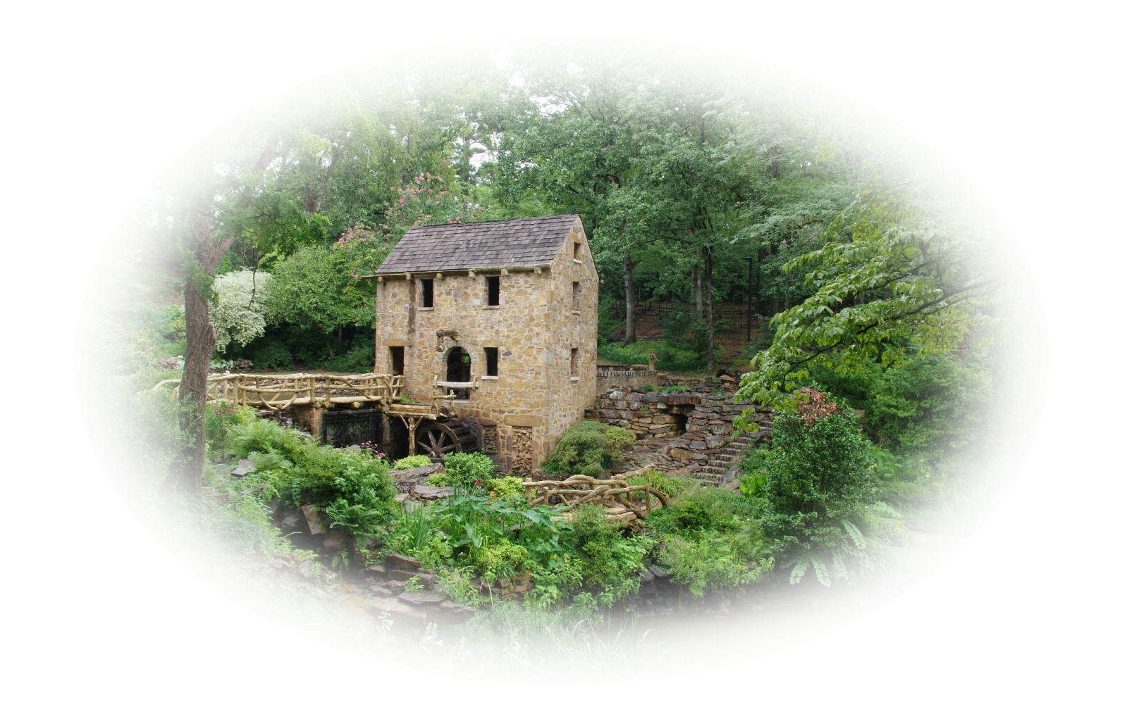 Dedicated August 6, 1933, as Pugh's Memorial Park, the Old Mill is a replica of an abandoned water-powered grist mill that would have been used by Arkansas pioneers in the 1800s. Although the Old Mill never actually operated as a mill, the iron grist mill on the first floor of the building is authentic and dates to 1828. It served the Cagle family of Pope County (See 3. Facts below) for three generations. Developer Justin Matthews intended for the Old Mill to appear as the ruins of a bygone era supplanted by modern methods. "Now completely forgotten by the hurrying world around it, the Old Mill quietly weathers the years in the depths of its secluded valley," Matthews said of his vision. A memorial to his friend and business partner, Thomas R. Pugh of Portland, Arkansas, the Old Mill with its wheel turning symbolizes Pugh's tireless energy. Millstones on the second floor of the building came from the Ashley County plantation of Tom Knoble. Pugh's grandfather, Frank Carmean of the Matthews Company designed the park and Bob Massey s supervised the project. Matthews commissioned Dionicio Rodrigez, a noted Mexican sculptor, whose faux bois (or fake wood) style was perfected in the details of this remarkable work of art. The Old Mill appeared in the opening credits of the 1939 movie, Gone With the Wind. ![]() Click Here for Youtube Video ![]() Click Here for More History by RV Travel Tales Other Facts 1. Two milestones on the old road to the mill etched with the numbers "1" and"4" were moved here from a military road laid out in the 1830s by Lt. Jefferson Davis (later President of the Confederacy). Along this road, the Cherokee and Choctaw Indians traveled from the present town of Dardanelle into the Indian territory, now Oklahoma. 2. Three sections of a hexagonal wrought iron shaft protecting the "Broken Tree Branch" were cut from the stern wheel of a passenger steamboat which traveled the Arkansas River in the 1800s. 3. As a results of a fire in downtown Russellville in 1906, the city realized they needed a water system and a new light plant. The old light plant was badly crippled by the fire. The site chosen was on the Illinois Bayou, west of the Russellville Country Club, on the site of the Old Cagles Mill. In 1838 Howard Cagle had brought mill stones from North Carolina and had established his mill on the west bank of the Illinois Bayou at this site. The mill was first run by water, but later was converted to steam. A replica of this mill, or a mill like it, was build in Pugh Memorial Park in Lakewood Addition of North Little Rock. The millstones are now in this park for everyone to enjoy. ![]() Picture of Old Cagles Mill on Illinois Bayou |