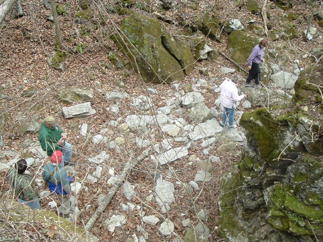 Vic pointing out some found fossils |